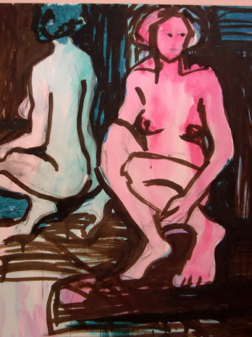 Sitzende im Spiegel(40 x 60)Acryl auf Papier